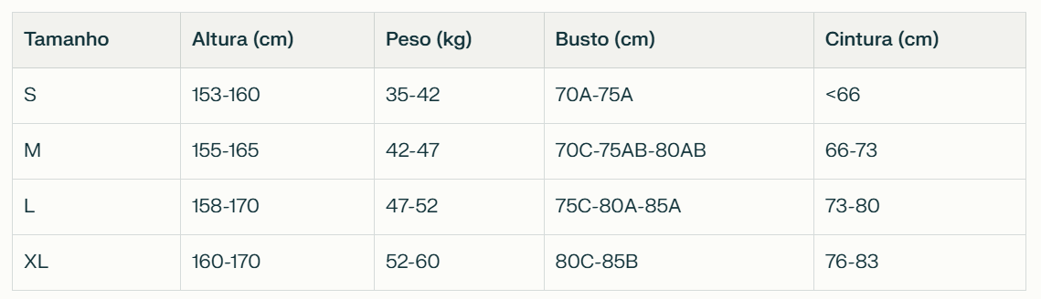 Guia de tamanho.